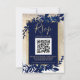 A modern, chic and elegant yellow gold typography Floral navy blue Christmas winter rsvp wedding with hand painted blue watercolor leaf foliage on an elegant gold background with white snow and snowflakes, add your qr code..