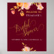 Chic and classy gold calligraphy script welcome bridal shower sign poster with blush peach peonies and gold / white lettering on a dark red burgundy background Please note that the dark red wine background color is editable. You can change it, as well as the lettering fonts and color, after selecting "customize further" option.