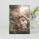 Gold script Christmas stars 1 photo green holiday Card
