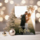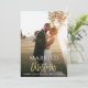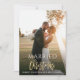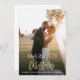 card design with a photo of the bride and groom and elegant faux gold brush typography. The text and colors can be personalized.