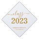Perfect custom graduation cap for the graduate! Celebrate your grad's accomplishment in style with this graduation cap topper. Design features "Class of 2023" elegant gold typography text on a clean white background. Personalize this product by adding the name and school name. Easy to customize. Congratulations!