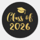 Gold Script Class of 2026 Graduation Favor Classic Round Sticker