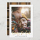 Gold script glory to god stylish holiday card with mustard tartan backer design. Space for single photo.