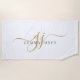Gold Script Initials Monogram Minimalist White Beach Towel