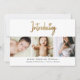 Share the joy of your little one’s arrival with this gold script custom 3-photo baby birth announcement card. Featuring elegant typography and space for three cherished photos, this card beautifully captures the essence of your newborn's first moments. Personalize with your baby’s name, birth details, and a special message. A timeless way to announce your bundle of joy!