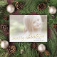 This elegant Christmas photo card features shimmering script in faux foil with a striped backer and space for a brief holiday message. Upload your own photo and customize the information to include your family's Christmas greeting.