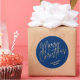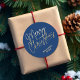 Gold Script Merry Christmas on Blue Classic Round Sticker