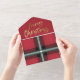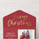 Gold effect stylish script merry christmas with coordinating red and green check tartan backer design. A modern take on a traditional christmas card.