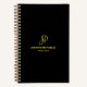 Custom Modern Black And Gold Elegant Script Monogram Template Professional Spiral Notebook.