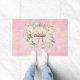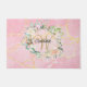 Pretty monogram doormat, featuring a beautiful white script name with a complimenting gold initial that is framed by a delicate watercolor floral rose garland on a pink geode agate background. Personalize to create a special keepsake gift to treasure! Designed by Thisisnotme©
