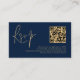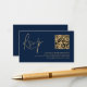Gold Script Navy Blue QR Code Wedding RSVP Enclosure Card