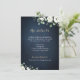 Modern gold script and watercolor white floral eucalyptus greenery on dark navy blue background, elegant and stylish, great for greenery rustic wedding, botanical garden wedding, boho floral wedding in summer and winter.