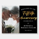 This is an elegant and modern welcome foam board to welcome your guests to your golden 50th wedding anniversary celebration in style. It is a simple and stylish handwritten script design in gold with a photo and simple text in white on a classic and chic black background. Please contact the designer for any queries about this design.