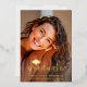 Elegant photo graduation announcement featuring stylish gold script typography and a modern graduation cap icon. This sophisticated senior graduation announcement highlights the graduate’s portrait while adding a celebratory gold-style script design for a timeless and polished look.