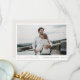 This simple, stylish modern photo wedding thank you card template features 'love and thanks' and your names and date beneath your photo. We've given this minimalist design a warm touch with 'love and thanks' in an elegant gold tone called California Gold in a relaxed, all lower case script that feels intimate and familiar. This element of the design can't be altered. But you can change the color and font of any of the other text. Your names on the front are in a slightly softened black by default. We chose a very light, pale orange hue for the background on the back, it's a tone called Isabelline(color f4f0ec), to lend a soft warmth, and it goes well with the gold tone of 'love and thanks' on the other side. You can easily change this by either picking one of the basic colors in the editing tools, entering another color number in place of ours if you have a specific hue in mind that you found in your research, or by looking at the color spectrum tool and choosing something by sight. You might decide to make the base transparent, to let the color of the paper simply serve as the background tone. We've picked a shade of gray as the default color for the text on the back. We've put some sample text on the back for you to replace with your own message as you see fit, but please don't feel restricted by this. If you prefer delete our sample text entirely and keep the back totally blank so that you can write a handwritten note on each card instead, you can do that. Or you might want to replace our text with your own message of gratitude and your own closing and then hand sign your names when you receive the cards. You can also change the font and you might change the case from the all upper case look we added. Just please be sure in any event to delete our sample/placeholder text on both sides of the card, and please remember to replace the placeholder photo on the front with your own. Use the intuitive design tools, your favorite photo and your inspiration and make it uniquely yours! And please browse our wedding thank you collection for more simply elegant modern wedding thank you card motifs, including this design with 'love and thanks' in other colors!