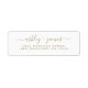 The Gold Script Wedding Return Address label features elegant handwritten calligraphy in a soft gold tone, paired with modern serif text on a crisp white background. Perfect for wedding invitations, thank-you cards, and save-the-dates, this refined design adds a touch of timeless elegance to your stationery suite.