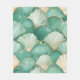 Gold Sea Shell Wave Pattern in Aqua Teal Fleece Blanket