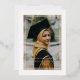 Upload a photo to this gold border graduation announcement. Featuring elegant foil and DIY grad name and a school. Perfect way to celebrate the next chapter of your favorite student.