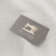 on a faux gray linen background with two lines of custom text in white.