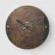 Gold Shamrock St.Patrick`s Day,Brown Leather Round Clock