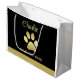 Gold Shiny Dog Paw on black background Large Gift Bag