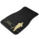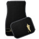These attractive floor mats are perfect for the baseball fan or player. The front mats feature a gold silhouette batter leaning on his bat, with your triple letter monogram at the side. The back floor mats have just the baseball player image without the monogram. Everything is placed on a solid black background. Classy!
