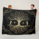 Gold Silhouette Flute Playing Kokopelli Blanket. Alien or What is Kokopelli Fleece Blanket. Native American Southwestern Black and Gold Abstract Kokopelli and tree. Cave Petroglyphs bedroom blankie. Sunset vivid color combination that you can change to match your room decor. Kokopelli is a fertility deity, a humpbacked flute player, win Native American cultures. Attributed to ancient aliens or tribal art and inspired by cave and rock drawings. Great gift idea for those that love southwestern decor, and the ancient mysteries of the planet.
