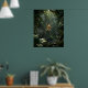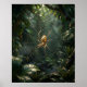 A delicate golden spider rests at the center of an intricate jewel-like web stretched across a lush emerald jungle. Crafted from spun gold textures and elegant metallic detailing, the spider appears graceful and decorative rather than threatening. Dew-like reflections sparkle among dark leaves, filtered light beams, and soft mist, creating a mysterious luxury atmosphere. This unique nature artwork is perfect for modern interiors, boutique spaces, eclectic décor, and collectors seeking bold conversation pieces.
