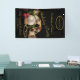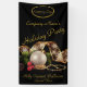 This elegant gold, black and silver design makes a statement of a successful year for your annual corporate holiday party. Decorated with a glittering silver ornament, nestled in red berries, a sprig of evergreen and strands of gold beads sets the elegant tone for this banner and your party. Behind the seasonal Christmas arrangement gleams a gold and silver lacy ribbon. The text is in rich gold.