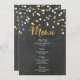 Wedding dinner menu in rustic chalkboard pattern with gold and silver glitter confetti pattern. (please note glitter is print only)