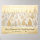 Gold and silver Christmas trees on a white snowy hillside background is from a vintage watercolor pine tree forest stylized painting. This elegant rendition is featured on a holiday poster. "Merry Christmas and Happy New Year" is the suggested greeting on the faux gold border trim, but it is editable. You can change it or delete it. Be sure to change the example family name (and year) to your own, or leave it off as you choose.