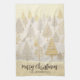 Elegant gold and silver Christmas trees appear on an off-white background in this vintage watercolor design for your holiday tea towels. There is a lovely faux gold trim border. You can edit the "Merry Christmas" greeting or leave it off. Be sure to edit the example family name, or delete it if you prefer none.