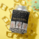 Elegant custom birthday design featuring gold and silver confetti over a black background, modern script typography with the words "Happy 100th Birthday" (in gold), your name and birth date (in silver) and three of your favorite photos framed in metallic gold foil.