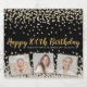 Elegant custom birthday design featuring gold and silver confetti over a black background, modern script typography with the words "Happy 100th Birthday" (in gold), your name and birth date (in silver) and three of your favorite photos framed in metallic gold foil.