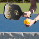Gold Silver Glitter Drip Monogram Sparkle on Black Pickleball Paddle