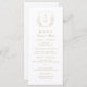 Monogrammed initials framed by elegant crest and hand illustrated botanical leaves, menu details in elegant script and classic font, simple and luxury. Great faux gold and white menu for modern classic wedding, simple formal wedding, elegant botanical garden wedding.
