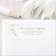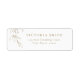 Minimalist return address sticker with rustic hand illustrated botanical leaves and modern classic font in faux gold and white, simple, elegant and professional.