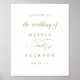 Romantic wedding welcome sign features stylish script and elegant font event details in gold color, modern and simple, great for modern simple wedding, minimalist formal wedding, traditional classic wedding.