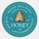 This teal label has editable fields to comply with the requirements listed by the National Honey Board in the US at the time this label was created; the word honey, your business name, personal name, address, and net weight of honey in grams and ounces must be included if you sell your honey. Includes vintage skep with golden gradient and double border. Common honey net weight conversions: 8oz (227g), 12oz (340g), 16oz (454g), 32oz (907g), 5lb (2.27kg).
