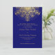 Gold snowflake on blue elegant winter wedding invitation