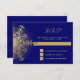 Gold snowflake on blue winter wedding response/reply RSVP card that features a golden snowflake on blue background. This personalized design is a fully customizable template and is part of a wedding set perfect for a winter or Christmas wedding.