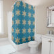 Gold Snowflake Patterns Rustic Ocean Blue Glittery Shower Curtain