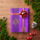 A stylish purple Christmas wrapping paper, with a design featuring shiny golden Christmas stars (or snowflakes) scattered over a metallic purple background to add some elegance and style to your Christmas gifts year.
