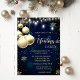 Gold Snowflakes,Balls,Lights Blue Christmas Invitation