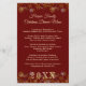 Christmas dinner menu template printed on affordable, flyer paper. Top and bottom border of gold snowflakes with light yellow text. Create a title, add the year date at the bottom, and list the menu choices for a special holiday feast on Christmas Day or Christmas Eve. Reverse has the same snowflake design on deep red color.