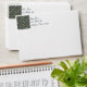 Card envelope with an insert of gold snowflakes on dark blue background. Customizable return address too.