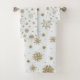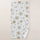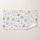 Christmas Classic gold glitter snowflakes and dots glow white pattern, filled with multiple unique gold stars, dots and snowflake geometric shapes, faux shining gold glitter and glowing white color, white background. This gold snowy sky evening winter feel snowflakes artwork, is perfect for winter season Christmas holidays decor.