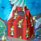 A festive little fellow, this golden snowman dressed in gold velvet vest and top hat, surrounded by stars and bows on a colorful red background, will add a great touch of Christmas spirit and cute whimsy to your gift giving this holiday season.