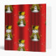 A colorful Christmas binder featuring a pattern of cute little snowmen in gold velvet on a bright red background to put your Christmas recipes in, photos of special Christmas occasions, Christmas decorating ideas, holiday planners, Christmas shopping lists, gift lists, or whatever you wish.
