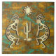 Brighten Your Home with this Unique "One of a Kind" Southwest Kokopelli Ceramic Tile! It Features a Two Gold and Black Southwest Kokopelli Playing the Flute and Dancing Around a Cactus Under the Sun on a Turquoise, Copper & Black Background!